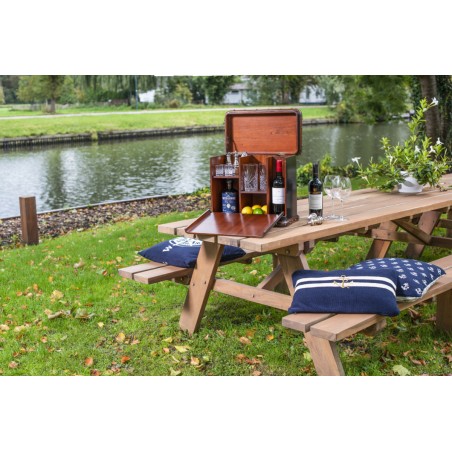Questo box da picnic in legno, rifinito e curato in ogni dettaglio, era solito essere usato dagli aristocratici britannici per le proprie gite in campagna.