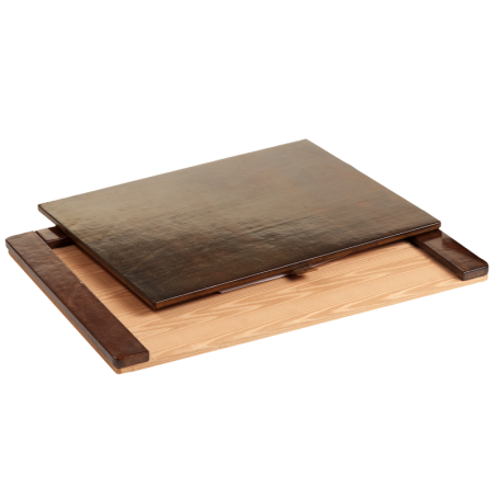 Sottomano in stile moderno realizzato con ossatura di legno ricoperta in cuoio conciato al vegetale , composto da due pezzi distinti (base e piano per scrivere) rifinito in moirè e corredato di carta assorbente. Colorato e lucidato a mano.