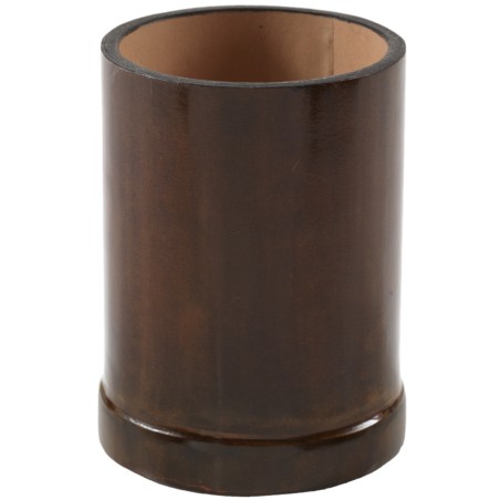 Porta lapis, porta penne in cuoio marrone di forma cilindrica da scrivania. Realizzato interamente in cuoio, conciato al vegetale, utilizzando la lavorazione tradizionale fiorentina, modellando il cuoio bagnato su forme di legno, asciugato e successivamente colorato e lucidato.