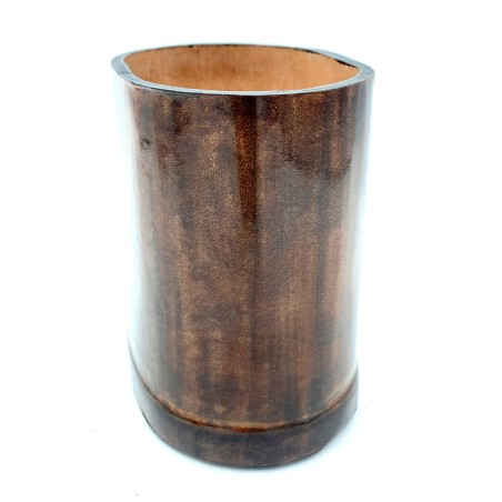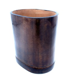 Portapenne, porta lapis ovale in cuoio conciato al vegetale utilizzando la lavorazione tradizionale fiorentina, modellando il cuoio bagnato su forme di legno, asciugato e successivamente colorato e lucidato.