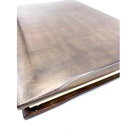 Album firme con copertina in cuoio, realizzato su ossatura ricoperta in cuoio conciato al vegetale senza nessuna cucitura.