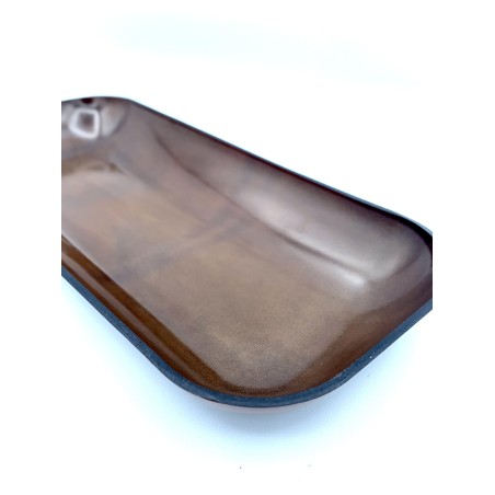 Vuota tasche, svuota tasche avana rettangolare lungo interamente in cuoio conciato al vegetale, modellato su forma di legno, senza nessuna cucitura. Colorato e lucidato a mano.