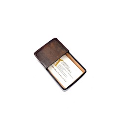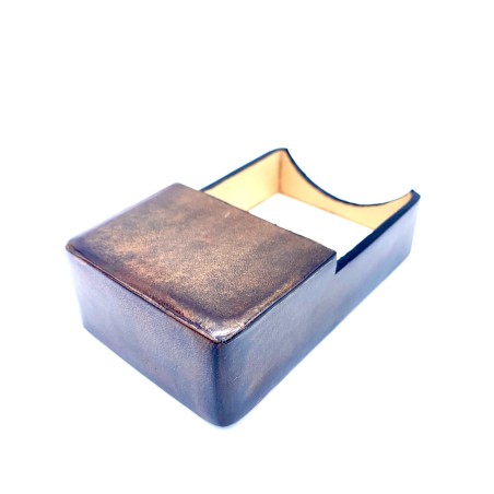 Porta biglietti da visita rettangolare da scrivania, color avana realizzato interamente in cuoio conciato al vegetale, seguendo la tradizione fiorentina, modellando il cuoio bagnato su forma in legno, asciugato, colorato e lucidato a mano, senza nessuna cucitura.