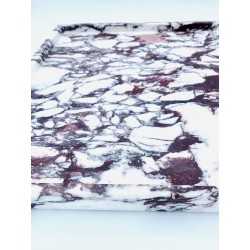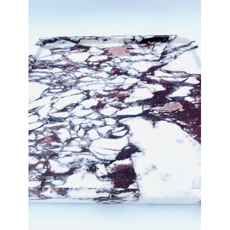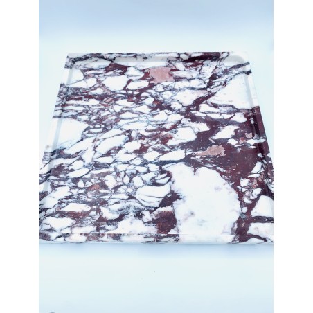 Vuota tasche quadrato in marmo sardo di Calacata. La realizzazione a mano di questo oggetto esalta ancora di più le venature del marmo di Calacata, le tonalità di viola e bordeaux mischiate al color prugna si mischiano al candore del bianco.