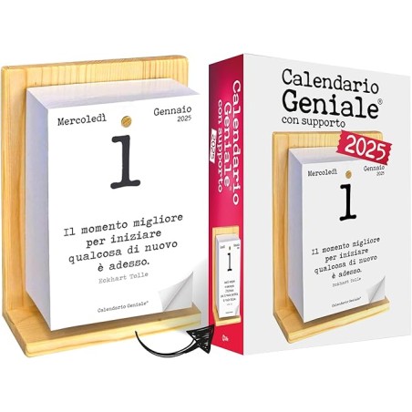 Formato classico A6, della misura 10x14 cm, comprende il supporto in legno che misura 12x17x5 cm e può essere riutilizzato l’anno successivo con il nuovo inserto