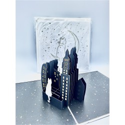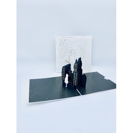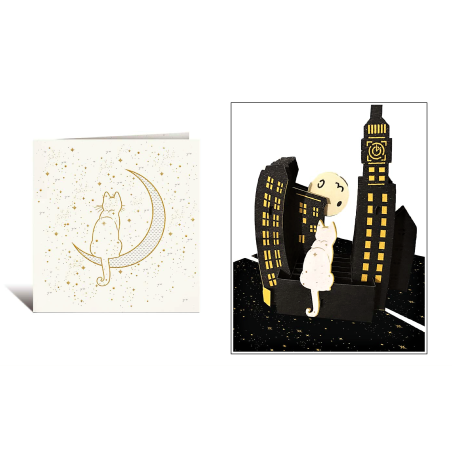 Biglietto Auguri Kirigami Gatto con luna