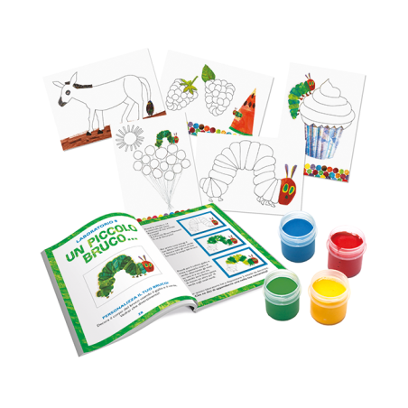 Un libro gioco con protagonista il Piccolo Bruco Maisazio e tutti i simpatici personaggi dei libri illustrati di Eric Carle, per divertirsi a leggere e giocare, facendo le prime sperimentazioni del colore con la pittura a dita. Nella scatola, oltre al libro, un set completo di tempere a dita di alta qualità e tante schede da decorare, dipingendo direttamente con le manine!