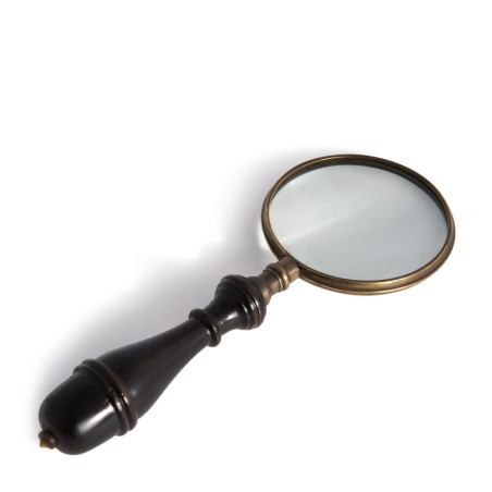 Lente d'ingrandimento Oxford in ottone e palissandro con finitura francese. La lente d'ingrandimento è per eccellenza un richiamo alla letteratura.