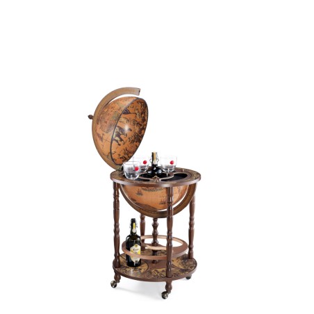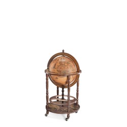 Mappamondo bar Zoffoli Minerva in legno e con ruote, mappa del XVI secolo.