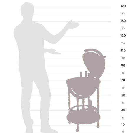 - Diametro sfera: 40 cm, il vano interno può ospitare fino a 9 bicchieri dal diametro massimo di 8 cm e 2/3 bottiglie. Ulteriori bottiglie possono essere riposte sulla base inferiore.