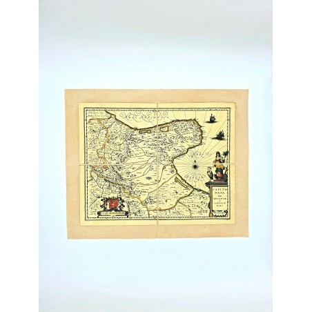 Riproduzione di Mappa del 1600 circa del cartografo olandese Joan Blaeu, cartografo e costruttore di globi terresti e strumenti scientifici. La Cartina rappresenta la zona del Gargano con le cittadine dell'epoca. Materiale: cartoncino applicato su stoffa. Dettagli in alta risoluzione.