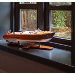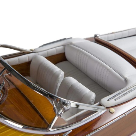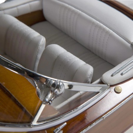 Modellino in legno e pelle del mitico Riva Aquarama, il Motoscafo per eccellenza, quello con la M maiuscola. Una riproduzione fedele di ogni dettaglio, un vero gioiello da esporre come oggetto d'arredamento. Il Riva Aquarama è un motoscafo prodotto dal costruttore italiano di imbarcazioni da diporto Riva per oltre un trentennio fino al 1996.