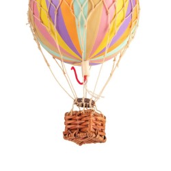 Mongolfiera mini a righe arcobaleno pastello, manifattura curata nei minimi dettagli, compresa di filo sintetico trasparente per appenderla ovunque vogliate. Leggera, ma solida al tempo stesso.