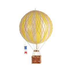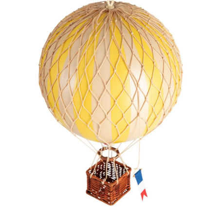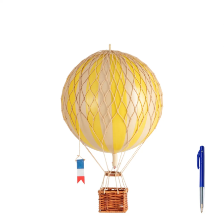 Mongolfiera media a righe gialle, manifattura curata nei minimi dettagli, compresa di filo sintetico trasparente per appenderla ovunque vogliate. Leggera, ma solida al tempo stesso.