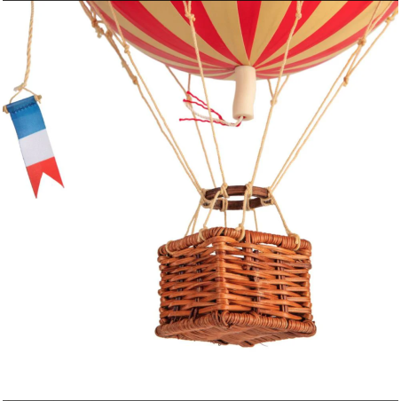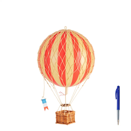Mongolfiera media a righe rosse, manifattura curata nei minimi dettagli, compresa di filo sintetico trasparente per appenderla ovunque vogliate. Leggera, ma solida al tempo stesso.