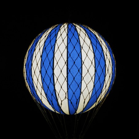 Mongolfiera grande a righe blu illuminata led, manifattura curata nei minimi dettagli, compresa di filo sintetico trasparente per appenderla ovunque vogliate. Leggera, ma solida al tempo stesso.