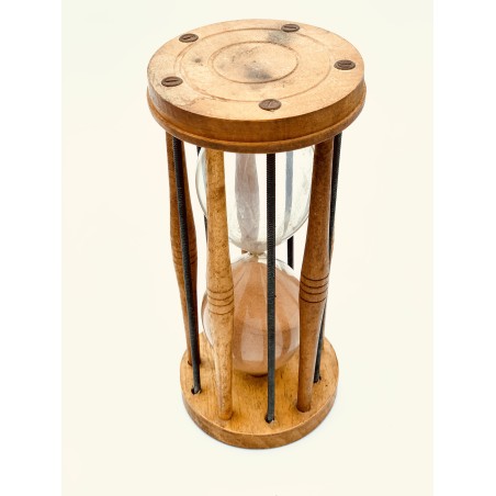 Clessidra in legno e metallo risalente agli inizi del '900. La clessidra è realizzata a mano, con sabbia naturale dal colore rossiccio.