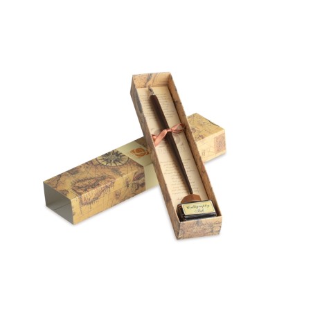 Penna calligrafica in legno con pennino ad immersione ed inchiostro marrone. E' dalle penne che da sempre prende vita l'essenza della parola Cultura, in qualsiasi sua forma. Per questo non può mancare un set da scrittura per coloro che trattano, cercano, aspirano o semplicemente apprezzano il Sapere.