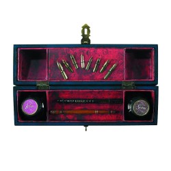 Set da scrittura in legno blu con pennini per la stilografica. Ad impreziosire il set due inchiostri. E' dalle penne che da sempre prende vita l'essenza della parola Cultura, in qualsiasi sua forma. Per questo non può mancare un set da scrittura per coloro che trattano, cercano, aspirano o semplicemente apprezzano il Sapere.
