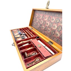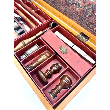 Set da scrittura in legno color miele con penne calligrafiche, ceralacca, inchiostri, Trianon