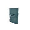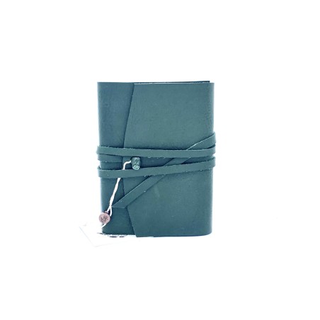 Quaderno taccuino in cuoio verde certificato dal Consorzio Vera Pelle Conciata al Vegetale in Toscana e lavorato a mano, con ribaltina e laccio in cuoio, misura piccola.