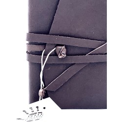Taccuino dal design vintage e ricercato, rilegato in morbido cuoio colorato certificato. L’articolo si contraddistingue per l’affascinante laccio in cuoio che lo avvolge, per la “ribaltina” che abbraccia il taccuino e per la carta pregiata tagliata e cucita a mano (140 gr cordenons-pordenone) color avorio e vergata con 100 fogli/200 pagine, adatta a qualsiasi tipologia di penna (anche stilografica) e perfetta anche per l'acquerello.