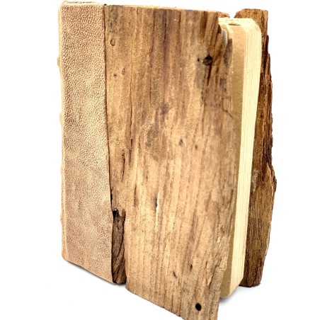 Quaderno in legno e carta, creato con tecniche di lavorazione così come venivano realizzate quando ancora il progresso non aveva messo a disposizione dell'uomo nessun tipo di macchinario.
