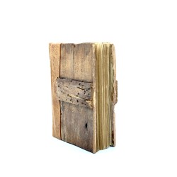 Quaderno in legno e carta, creato con tecniche di lavorazione così come venivano realizzate quando ancora il progresso non aveva messo a disposizione dell'uomo nessun tipo di macchinario.