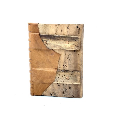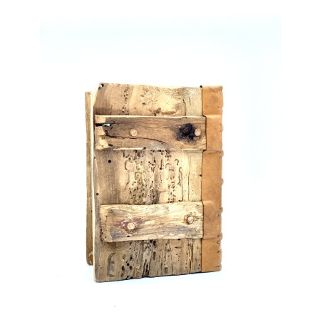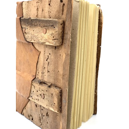 Quaderno in legno e carta, creato con tecniche di lavorazione così come venivano realizzate quando ancora il progresso non aveva messo a disposizione dell'uomo nessun tipo di macchinario.