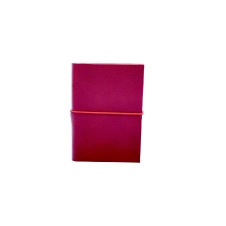 Quaderno taccuino in cuoio rosso certificato dal Consorzio Vera Pelle Conciata al Vegetale in Toscana e lavorato a mano, con pratico e colorato elastico, misura piccola.