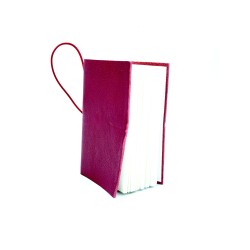 Quaderno taccuino in cuoio rosso certificato dal Consorzio Vera Pelle Conciata al Vegetale. Lavorato e rilegato a mano, chiuso da un pratico elastico colorato, misura piccola