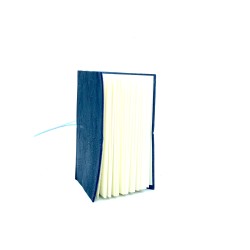 Quaderno taccuino in cuoio blu certificato dal Consorzio Vera Pelle Conciata al Vegetale. Lavorato e rilegato a mano, chiuso da un pratico elastico colorato, misura piccola