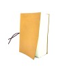 Quaderno taccuino in cuoio giallo certificato dal Consorzio Vera Pelle Conciata al Vegetale. Lavorato e rilegato a mano, chiuso da un pratico elastico colorato, misura media
