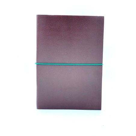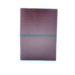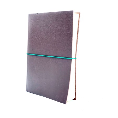 Quaderno taccuino in cuoio marrone certificato dal Consorzio Vera Pelle Conciata al Vegetale in Toscana e lavorato a mano, con pratico e colorato elastico, misura grande.
