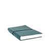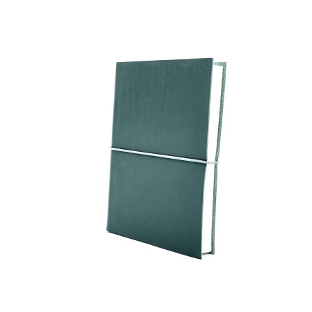 Quaderno taccuino in cuoio verde certificato dal Consorzio Vera Pelle Conciata al Vegetale in Toscana e lavorato a mano, con pratico e colorato elastico, misura grande.