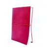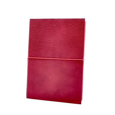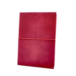 Quaderno taccuino in cuoio rosso certificato dal Consorzio Vera Pelle Conciata al Vegetale in Toscana e lavorato a mano, con pratico e colorato elastico, misura grande.