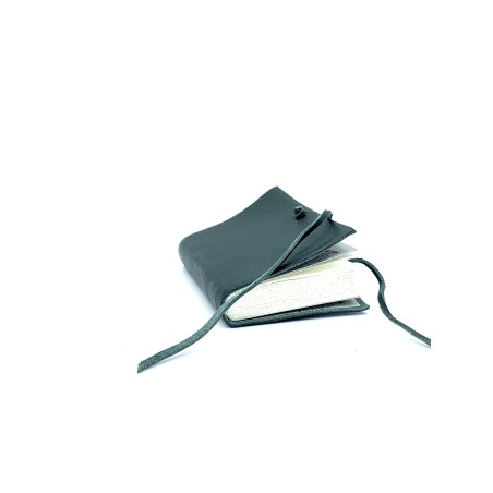 Quaderno taccuino in cuoio verde certificato dal Consorzio Vera Pelle Conciata al Vegetale in Toscana e lavorato a mano, con lacci in cuoio, misura piccola.