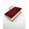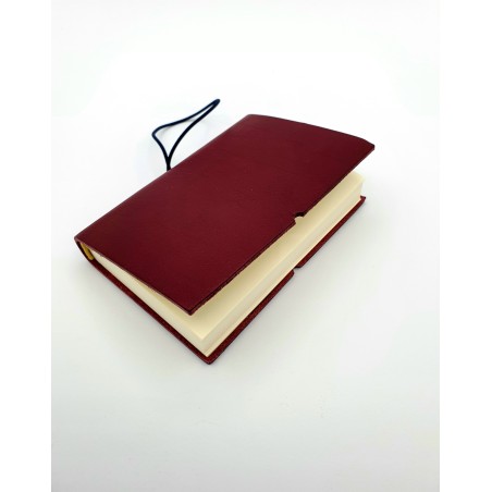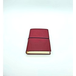 Quaderno taccuino in cuoio bordeaux certificato dal Consorzio Vera Pelle Conciata al Vegetale. Lavorato e rilegato a mano, chiuso da un pratico elastico colorato, misura piccola