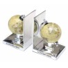 Reggilibri a coppia in alluminio e globo vintage con mappa chiara.