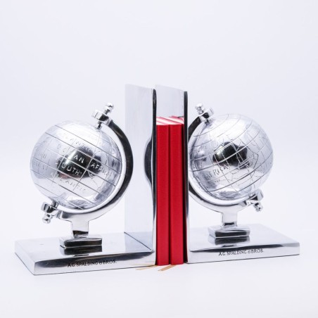 Reggilibri a coppia con globi in alluminio. Per reggere i libri con eleganza e per arredare le vostre mensole con un prodotto di design dal gusto moderno.