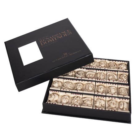 Un modo diverso per giocare a domino, non attraverso dei semplici pallini disegnati su pezzi di plastica ma attraverso un domino artistico che riporta figure rinascimentali.