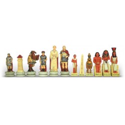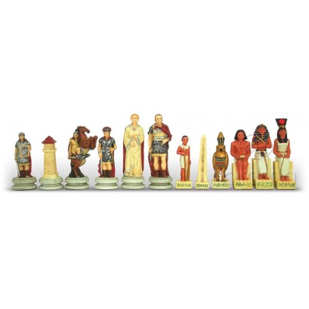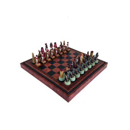 Con questo set da scacchi ci caliamo in una battaglia storica tra Romani ed Egizi. La bellezza delle pedine regala al gioco un sapore storico e culturale di altri tempi. Come diciamo sempre non si tratta di una semplice scacchiera, ma di una vera opera d'arte riproposta sotto forma di quadrato da gioco. Per questo l'abbiamo selezionata e proposta nel nostro store online.