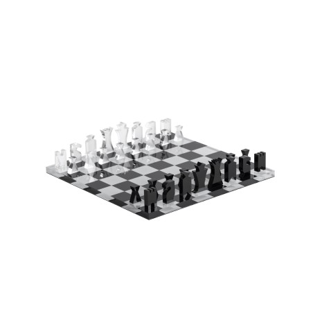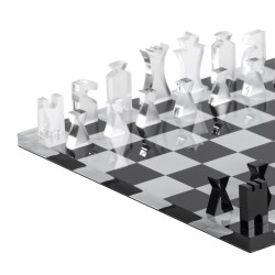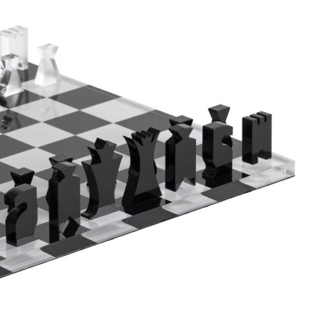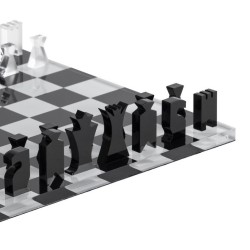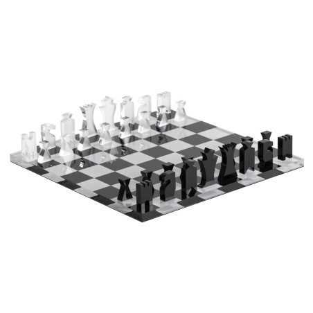 Scacchiera con scacchi e dama in cristallo acrilico trasparente serigrafato