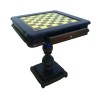 Tavolo da scacchi quadrato, di pregiata fattura in faggio. Con una sola solida gamba a reggere il tavolo ha la particolarità di avere un cassetto a scomparsa. Rifinito completamente a mano negli intarsi. Un vero gioiello da esporre non solo per giocare ma per arredare la casa, l'ufficio e lo studio. Un pezzo d'arredamento che travalica il semplice gioco degli scacchi e che definisce lo spazio intorno a sè. Con due sedie poste una di fronte all'altra completa qualsiasi angolo si voglia arredare. Come diciamo sempre non si tratta di una semplice scacchiera, ma di una vera opera d'arte riproposta sotto forma di quadrato da gioco. Per questo l'abbiamo selezionata e proposta nel nostro store online.