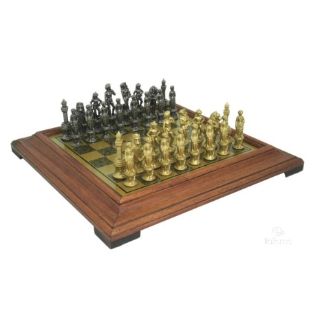 Set scacchiera in legno effetto ottone con scacchi Fiorentino