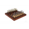 Scacchiera in similpelle con contenitore. Set impreziosito dalla presenza di scacchi in metallo stampati e rifiniti a mano, in stile Medioevale.