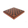 Scacchiera in similpelle con contenitore per backgammon e pedine da dama. Il set da scacchi è impreziosito dalla presenza di scacchi "storici" in stile Medioevale dipinti e rifiniti a mano.