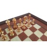 Scacchiera in radica di madrona e scacchi in ottone stile Staunton medio.