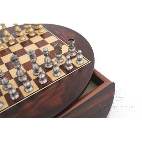 Set scacchiera in palissandro con cassetto e scacchi Francese