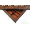 Da sempre pensiamo che un oggetto come la scacchiera debba avere molteplici funzioni: deve avere tutte le caratteristiche di un oggetto per veri appassionati (pesatura, dimensioni, precisione dei dettagli), essere un ottimo prodotto anche per un giocatore sporadico, ma soprattutto mantenere la sua unicità come prodotto d'arredamento. Una scacchiera come questa è da mettere in mostra, nasce per arredare uno spazio in casa, in ufficio o in studio. I materiali sono di prima scelta; la scacchiera viene prodotta e rifinita a mano in Toscana.